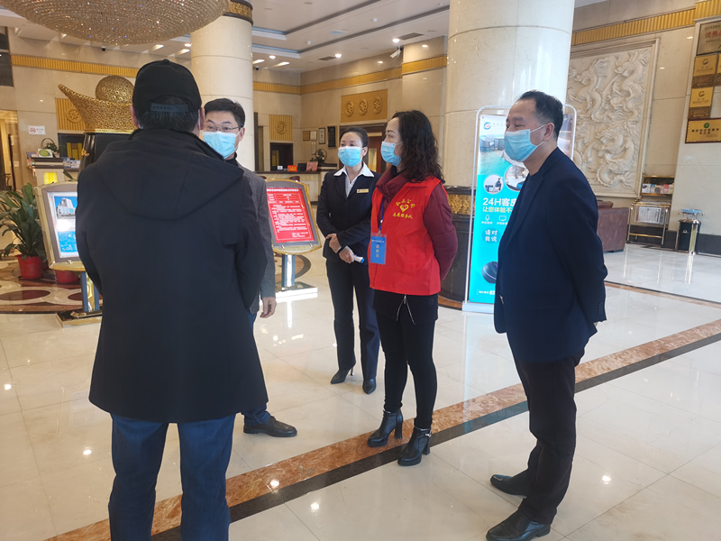2月14日,弘湘國投工會主席陳新驥和商業(yè)大廈負(fù)責(zé)人蔣臘生一同前往商業(yè)大廈租賃單位神龍大酒店檢查指導(dǎo)疫情防控工作,了解酒店疫情防控措施、復(fù)工人員健康狀況以及企業(yè)防疫所存在困難,幫助酒店復(fù)工復(fù)產(chǎn)。