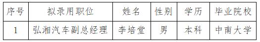 衡陽弘湘汽車科技有限公司擬錄用人員公示公告